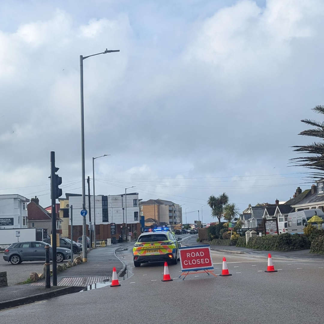 Overturned car closes Newquay road