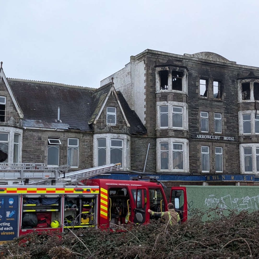 Investigations are underway after a fire at the derelict Narrowcliff Hotel in Newquay on Sunday.