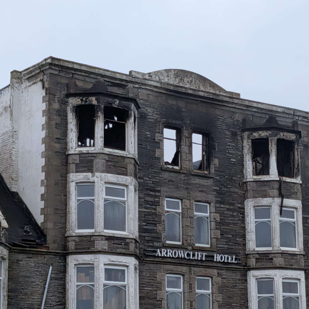 Investigations are underway after a fire at the derelict Narrowcliff Hotel in Newquay on Sunday.