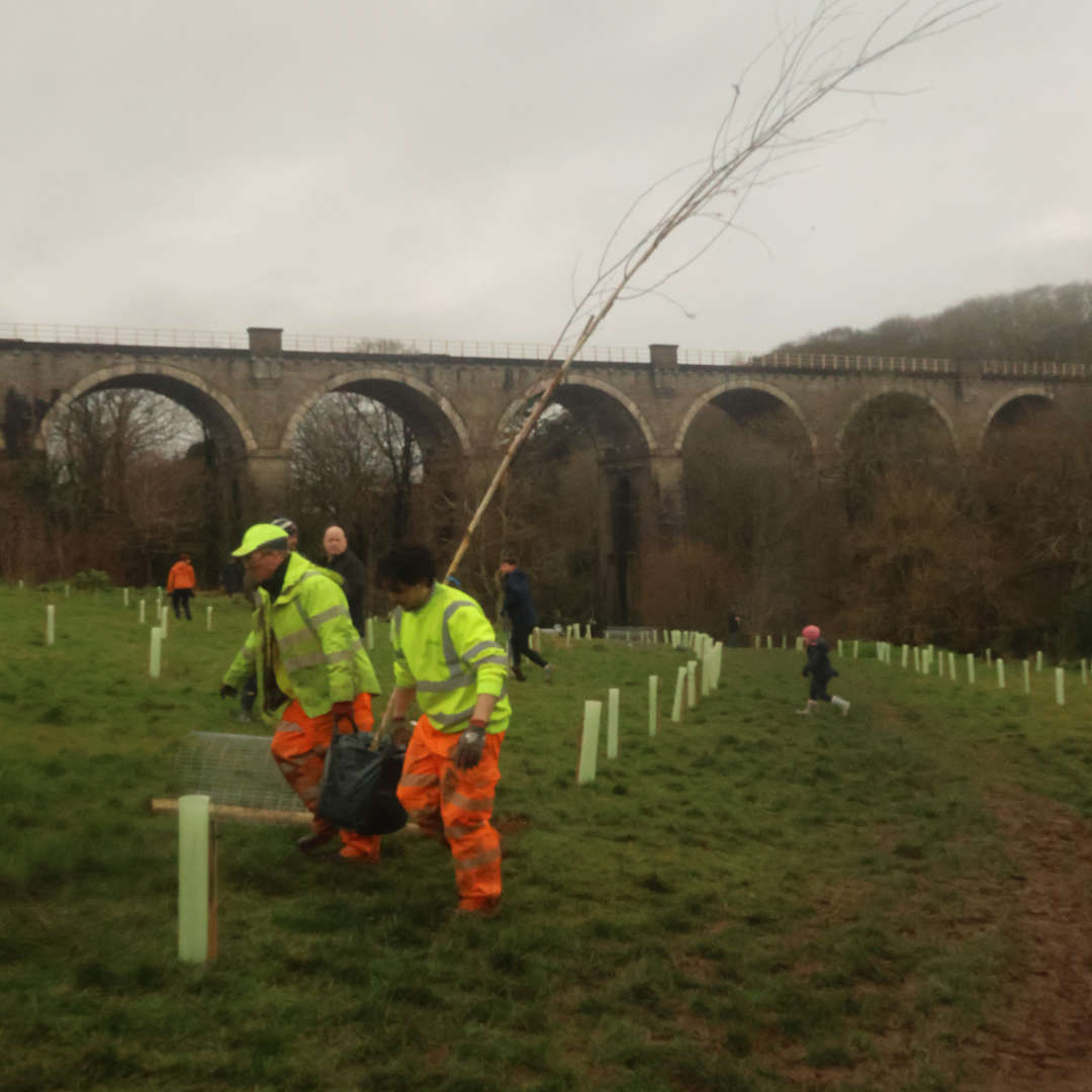The saplings were planted on a strip of land between the viaduct and the trampoline park at Trenance on Tuesday.