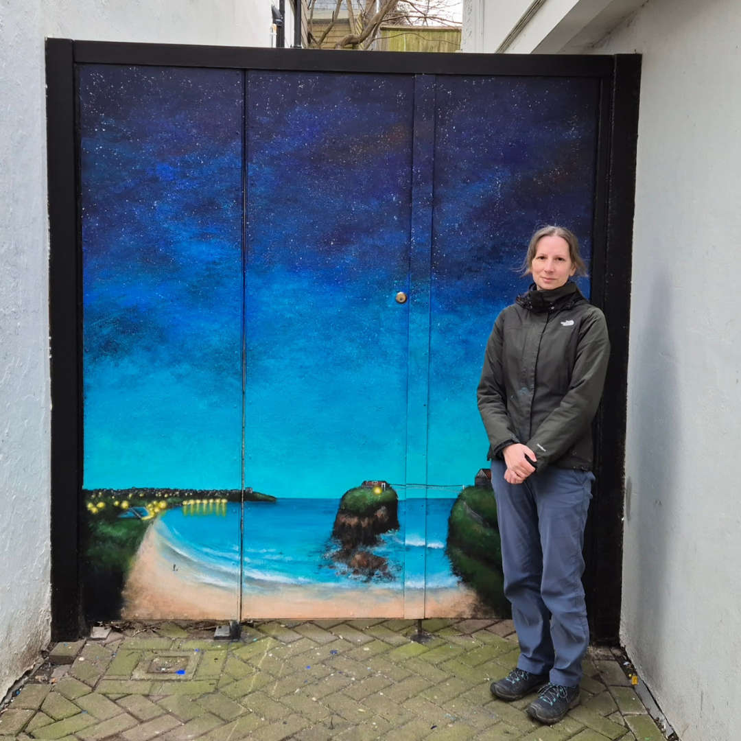One of the first pieces in the doorway project was created by Newquay-based artist Diane Griffiths on Bank Street. The artwork depicts a night-time scene overlooking Towan Beach.
