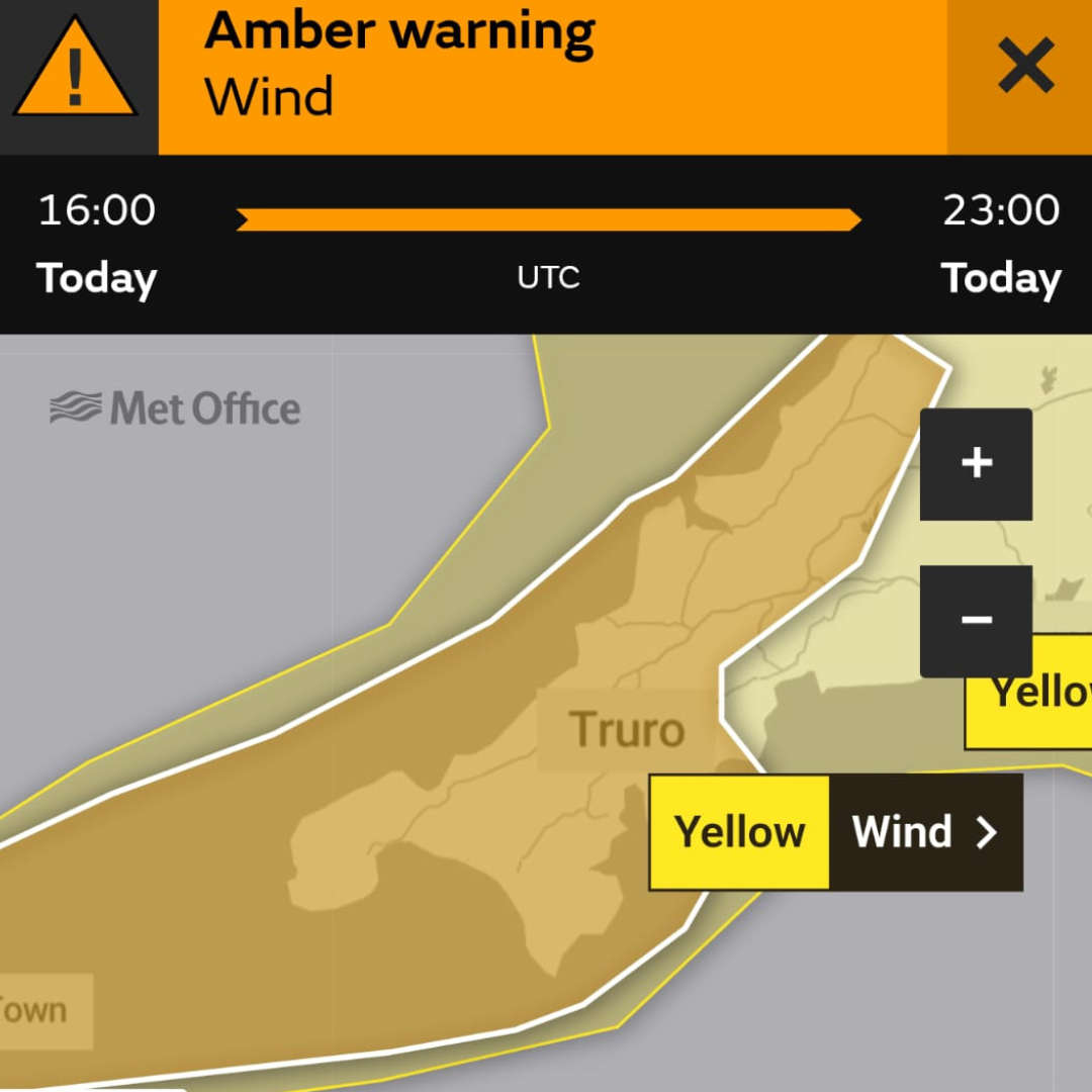 Amber wind warning extended as Cornwall braces for Storm Goretti
